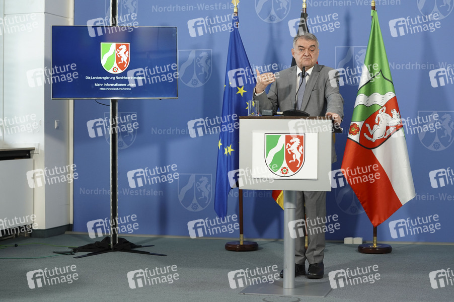 Politiker, CDU, Innenminister von Nordrhein-Westfalen, Politik, Presse-Briefing, PK, Pressekonferenz, Statement, Corona, Sars-CoV-2, Covid-19, Coronavirus, Coronaviren, Corona-Virus, Coronakrise, Corona-Krise, Corona-Pandemie, Coronamaßnahmen, Kriminalität