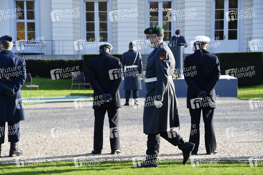Vorbereitungen für die Ansprache des Bundespräsidenten beim Feierlichen Gelöbnis zum 65. Gründungstag der Bundeswehr vor dem Schloss Bellevue. Berlin, 12.11.2020