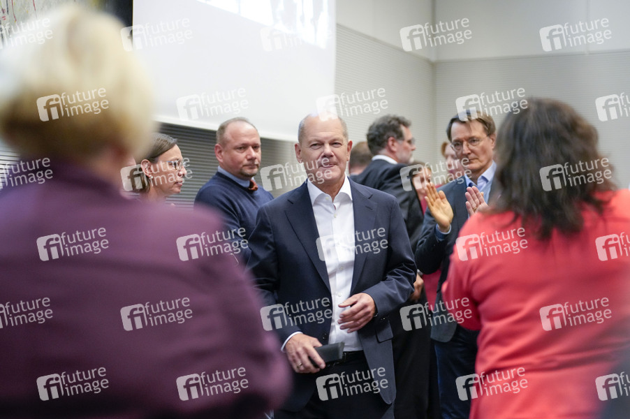 Olaf Scholz bei der Fraktionssitzung der SPD-Bundestagsfraktion nach dem Ampel-Aus im Reichstagsgebäude. Berlin, 06.11.2024