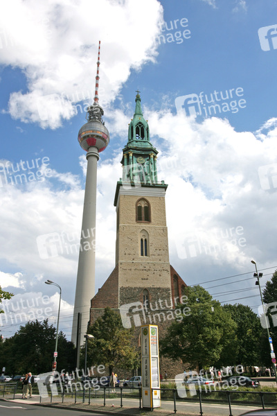 erbaut wurden die Grundmauern der Marienkirche im 13. Jahrhundert aus Feldsteinen und Granit, eine der ältesten Kirchen Berlins, im Hintergrund der Fernsehturm