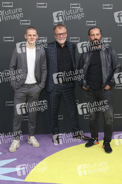 Max von der Groeben, Stefan Ruzowitzky und Murathan Muslu bei der Premiere des Kinofilms 'Hinterland' auf dem 29. Filmfest Hamburg 2021 im Cinemaxx Dammor. Hamburg, 02.10.2021