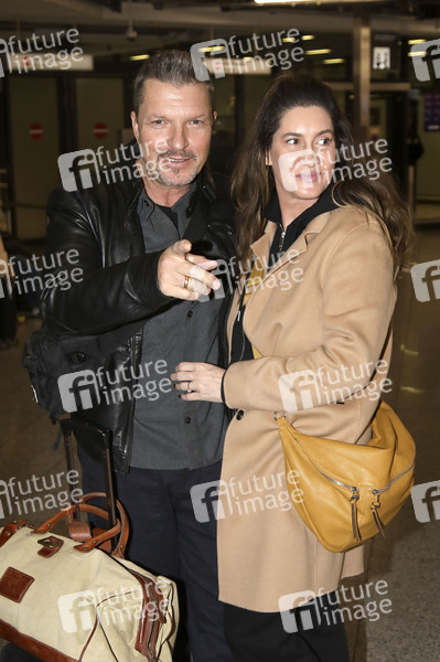 Hardy Krüger jr. mit Ehefrau Alice Krüger bei der Abreise der Dschungelcamp-Kandidaten der RTL Reality-TV-Show 'Ich bin ein Star - holt mich hier raus' nach Australien auf dem Flughafen Frankfurt am Main. Frankfurt, 16.01.2026