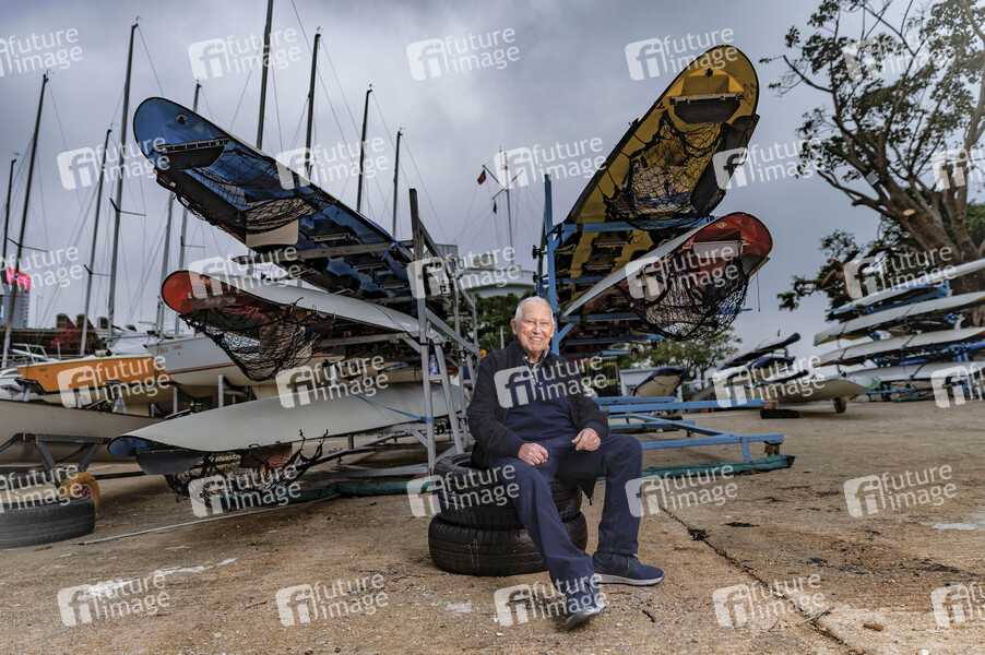 Neil Pryde bei eiem exklusiven Photoshooting im Hong Kong Yacht Club. Pryde gilt als visionärer Industrieller, der Hongkong seit den 1980er Jahren zu einem globalen Zentrum für Windsurfing-Innovationen gemacht hat und dabei Präzisionstechnik mit seiner Leidenschaft für das Windsurfen verband. Honykong, 30.01.2024