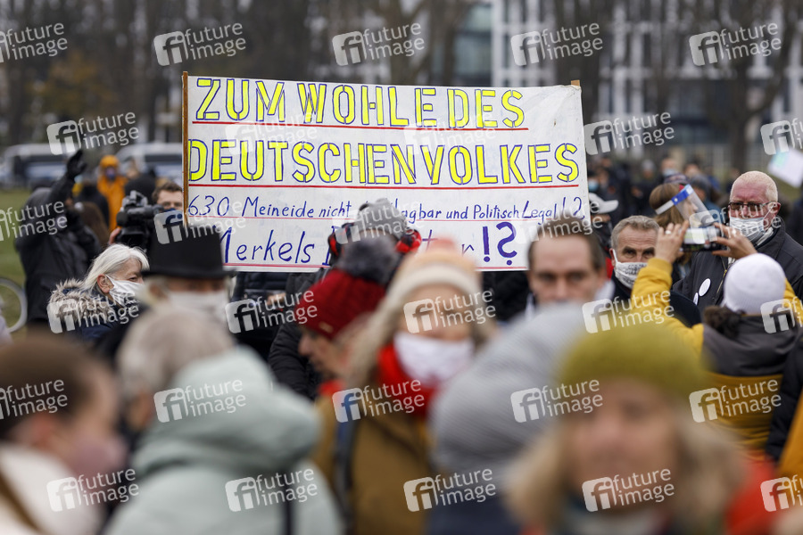 Demonstranten auf der Querdenken-Demo im Rheinpark Golzheim demonstrieren gegen Merkel. Düsseldorf, 06.12.2020