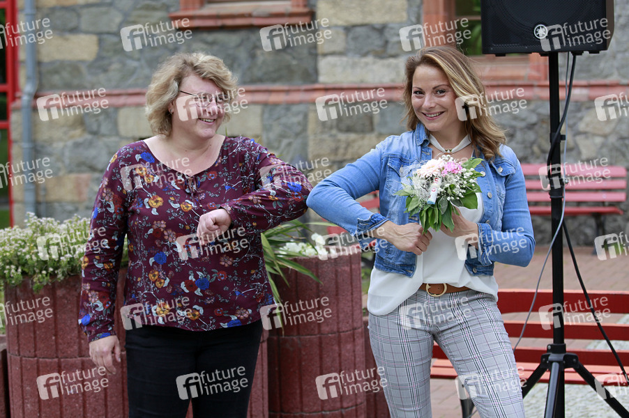 Sängerin, Schlager, Prominenz, Celebrity, Celebrities, Auftritt, live, Unterhaltung, Entertainment, Kultur, Altenheuim, Pflegeheim, Open Air, Corona, Sars-CoV-2, Covid-19, Coronavirus, Coronakrise, Corona-Krise, Corona-Pandemie, Coronamaßnahmen, Corona-Schutz, Kontaktverbot, Mindestabstand, Social Distancing, Abstand, Abstandhalten, Abstandsregel