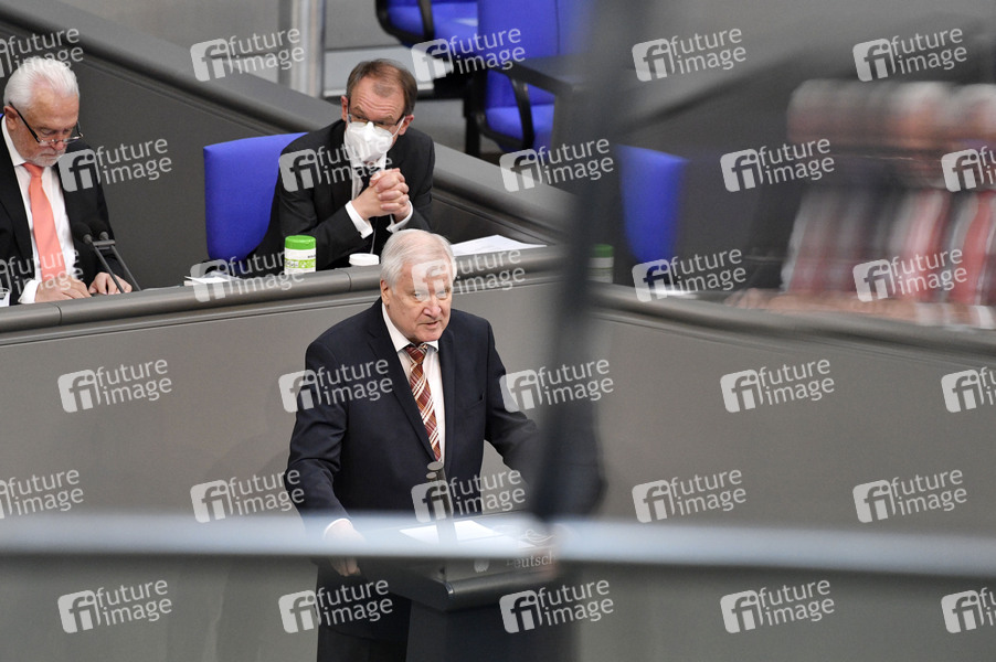 Wolfgang Kubicki und Horst Seehofer in der 225. Sitzung des Deutschen Bundestages im Reichstagsgebäude. Berlin, 23.04.2021