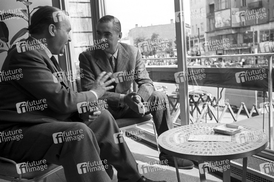 Filmschaffende im Gespräch auf der Berlinale 1951 / 1. Internationale Filmfestspiele Berlin. Berlin, 07.06.1951