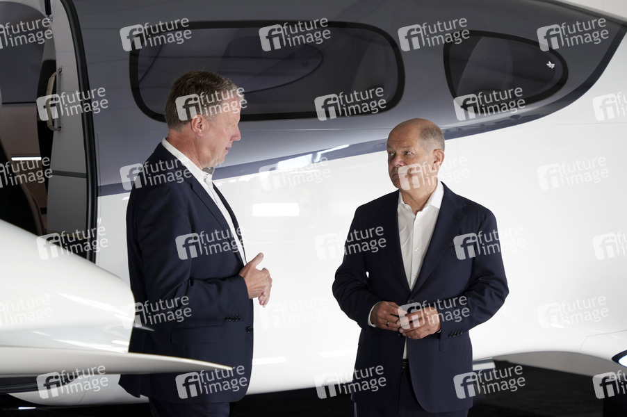 Olaf Scholz vor einem Lilium Jet beim Eröffnungsrundgang der ILA Berlin auf dem ILA-Gelände am Flughafen BER Berlin-Brandenburg. Berlin, 05.06.2024