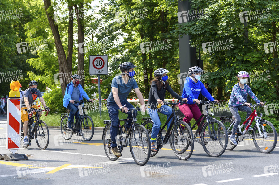 Aktion zum Bürgerbegehren 'Radentscheid Nürnberg 2020: für ein sicheres Miteinander' auf dem Volksfestplatz. Nürnberg, 21.05.2020