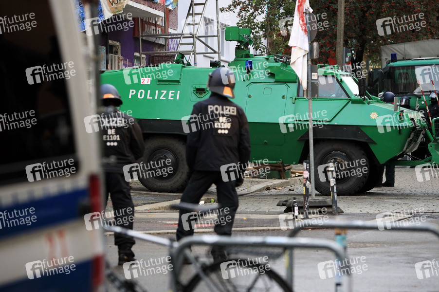 Die Berliner Polizei hat das Wohnprojekt Liebig34 in Berlin-Friedrichshain geräumt. Polizisten verschafften sich Zugang zu dem Haus führten nach und nach die Bewohnerinnen heraus. Die Berliner Polizei war mit 1500 Beamten im Einsatz. Vor dem Haus kam es zu Demonstrationen. Berlin, 09.10.2020