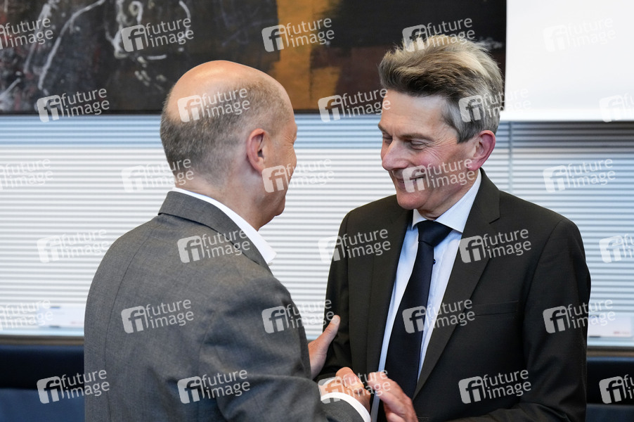 Olaf Scholz und Rolf Mützenich bei der Fraktionssitzung der SPD-Bundestagsfraktion im Reichstagsgebäude. Berlin, 25.06.2024