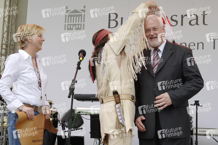 Peter Harry Carstensen, Bundesratspräsident und Ministerpräsident des Landes Schleswig-Holstein, wurde von Gojko Mitic in den Kreis der Ehrenhäuptlinge der Karl-May-Spiele aufgenommen. Er bekam eine Lederurkunde mit seinem indianischen Namen 'Starker Bär aus dem Norden' überreicht. Die Würdigung fand am Tag der offenen Tür im Bundesrat in Berlin statt.