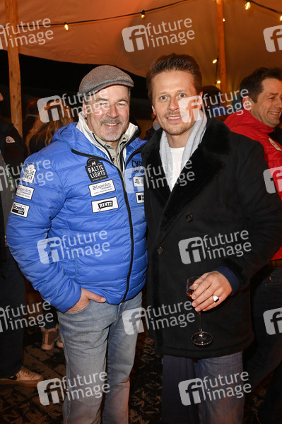 Till Demtroeder und Roman Knizka beim Opening der Baltic Lights 2025 mit Fackellauf an der Seebrücke Heringsdorf. Heringsdorf, 28.02.2025