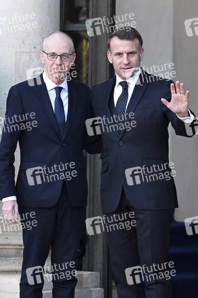 Luc Frieden und Emmanuel Macron beim Treffen der Koaltion der Willigen zu Beratung über die militärische Unterstützung für die Ukraine im Élysée-Palast. Paris, 06.01.2026