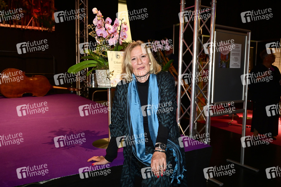 Suzanne von Borsody, als Namensgeberin, bei der feierliche Taufe einer neuen Orchideenzüchtung bei der Nacht der Orchideen während der Ostermesse Dresdner Ostern in der Messe Dresden. Dresden, 28.03.2025