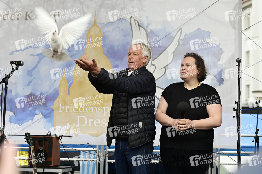 Jürgen Fliege bei einer 'Friedensprozession' am Karfreitag unter dem Motto 'Frieden kennt keine Brandmauern' auf dem Postplatz. Dresden, 18.04.2025