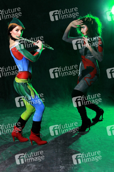 Rattenfänger Bodypainting mit den Models Lisa und Janina im Schlosshotel Münchhausen, Aerzen. Body Paint Künstler: Jörg Düsterwald