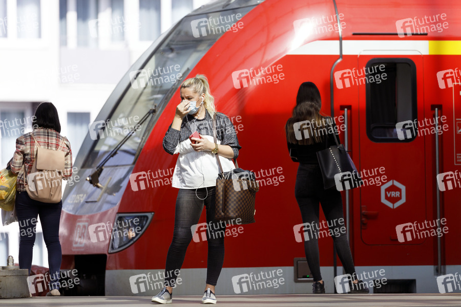 DB, Deutsche Bahn, Hauptbahnhof, Maskenpflicht in öffentlichen Verkehrsmitteln, öffentliche Verkehrsmittel, Bus, Busse, Bahn, Bahnen, Zug, Züge, maskiert, vermummt, Vermummung, NRW, Maske, Masken, Masken-Pflicht, Gesichtsmaske, Behelfsmaske, Behelfsmasken, Straßenbild, Öffentlichkeit, öffentlicher Raum, Maske tragen, Masken tragen, Mindestabstand, Lockerung der Corona-Maßnahmen, Tröpfcheninfektion, Spritzschutz, Eindämmung, Virenschutz, Übertragung, Maskenzwang, Bußgelder, Ordnungsgelder, Corona-Gesetze, Durchseuchung, immun, Immunität, Reproduktionszahl, Seuchenschutz, Virologie, Infektionsschutz, Atemschutz, Atemschutzmaske, Virenschutz, Schutzmaske, Schutzmasken, Atemschutzmasken, Maske, Masken, FFP1, FFP2, FFP3, FFP-Schutzklassen, Schutzklasse, Mundschutz, Mundschutzpflicht, Mund-Schutz, Mundschutz-Pflicht, Mund-Nase-Schutz, Mund-Nasen-Schutz, MNS, Ausbreitung, Corona-Schutz, Virus, Viren, Corona, Sars-CoV-2, Covid-19, Coronavirus, Coronaviren, Corona-Virus, Corona-Viren, Ansteckung, Ansteckungsgefahr, Epidemie, Pandemie, Infektion, Infektionen, schützen, Schutz, Maßnahmen, Neuansteckungen, Ansteckung, Coronakrise, Corona-Krise, Coronamaßnahmen, Corona-Schutz, Corona-Maßnahmen, Papiermaske, Papiermasken, Kontaktverbot, Ausgangsbeschränkungen, Mindestabstand, Ausgangssperre, Lockdown, Lock Down, Symbolfoto, Symbolbild