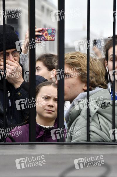 Greta Thunberg spricht bei der 'Fridays for Future' Schülerdemonstration gegen die Klimapolitik vor dem Brandenburger Tor. Berlin, 29.03.2019