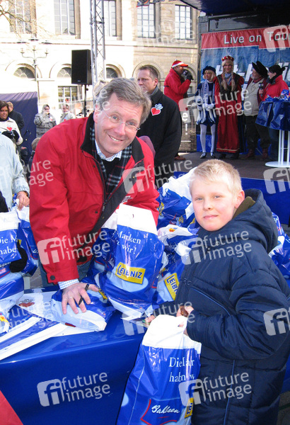 Adventszeit 2005 in Hannover, Bahlsen Keksverkauf für wohltätige Zwecke mit Pomis vor der Oper
