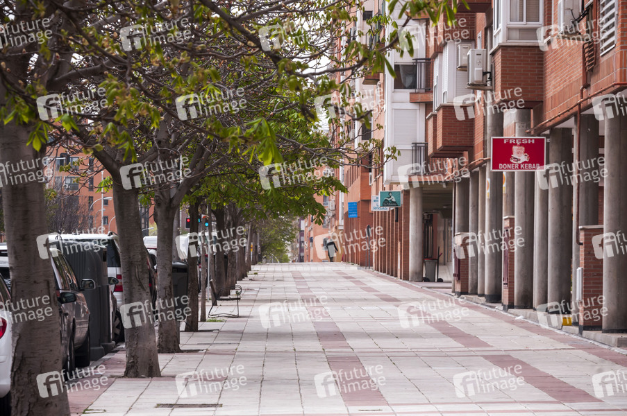 Die spanische Regierung hat den Ausnahmezustand wegen des Coronavirus COVID-19 erklärt. Die Bevölkerung steht 15 Tage zu Hause unter Quarantäne. Die spanische Polizei und Armee überprüfen Menschen, die durch die Straßen gehen. Erlaubt sind Gänge in Krankenhaus, in Supermärkte, Kioske und Apotheken, sowie das Ausführen von Haustieren und der Weg zur Arbeit. Madrid, 19.03.2020