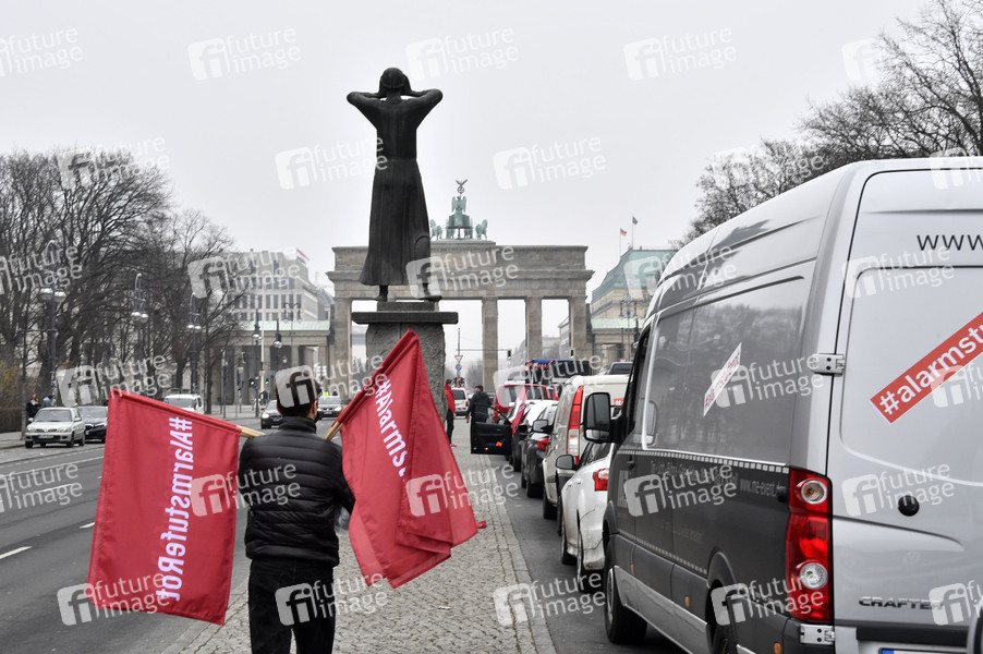 Nach 365 Tagen Lockdown in der Veranstaltungswirtschaft findet heute eine Auto-Demonstration zur Rettung der Veranstaltungswirtschaft vom Aktionsbündnis 'Alarmstufe Rot' statt. Berlin, 28.02.2021