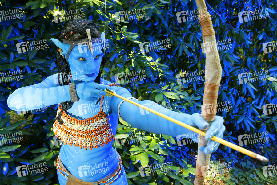 GEEK ART - Bodypainting meets SciFi, Fantasy and more: 'Avatar' Photoshooting mit Sarah Specker als Neytiri im Czarnecki-Garten. Hameln, 04.08.2019 - Ein Projekt des Fotografen Tschiponnique Skupin und des Bodypainters und Transformakers Enrico Lein
