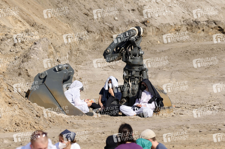 Klimaaktivisten besetzen A100-Baustelle. Aktivisten des Bündnisses Robin Wood demonstrieren mit der Aktion zusammen mit Aktivisten der Organisationen Ende Gelände, Fridays for Future und Sand im Getriebe gegen den geplanten Ausbau der Autobahn. Berlin, 05.06.2021