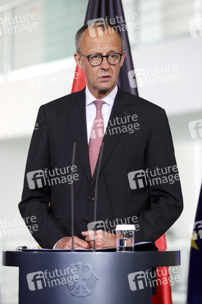 Friedrich Merz beim Empfang des niederländischen Ministerpräsidenten zu einem gemeinsamen Gespräch mit anschließendem Pressestatement im Bundeskanzleramt. Berlin, 10.06.2025
