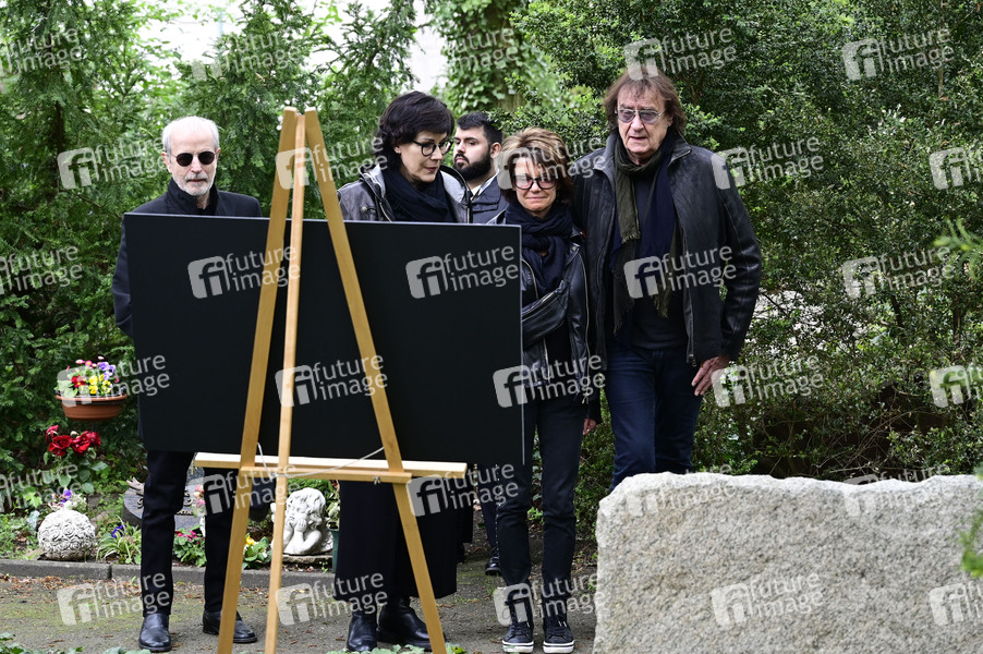 Dieter 'Maschine' Birr von den Puhdys mit Ehefrau Sylvia Birr am Grab des verstorbenen Gitarristen von City, Fritz Puppel, auf dem Friedhof Baumschulenweg. Berlin, 10.04.2024