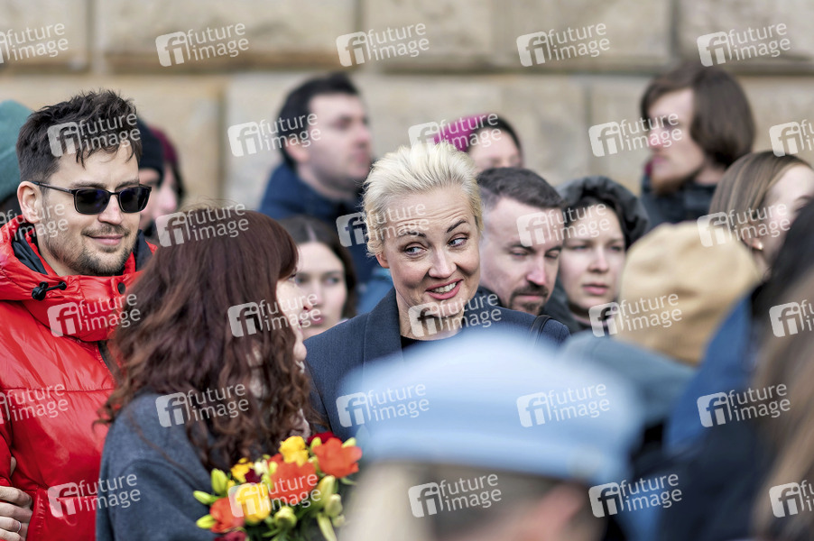 Julija Nawalnaja mit Menschen aus Russland bei der Stimmabgabe zur russischen Präsidentschaftswahl in der Botschaft von Russland. Dabei kam es zu Protesten gegen Wladimir Putin. Berlin, 17.03.2024
