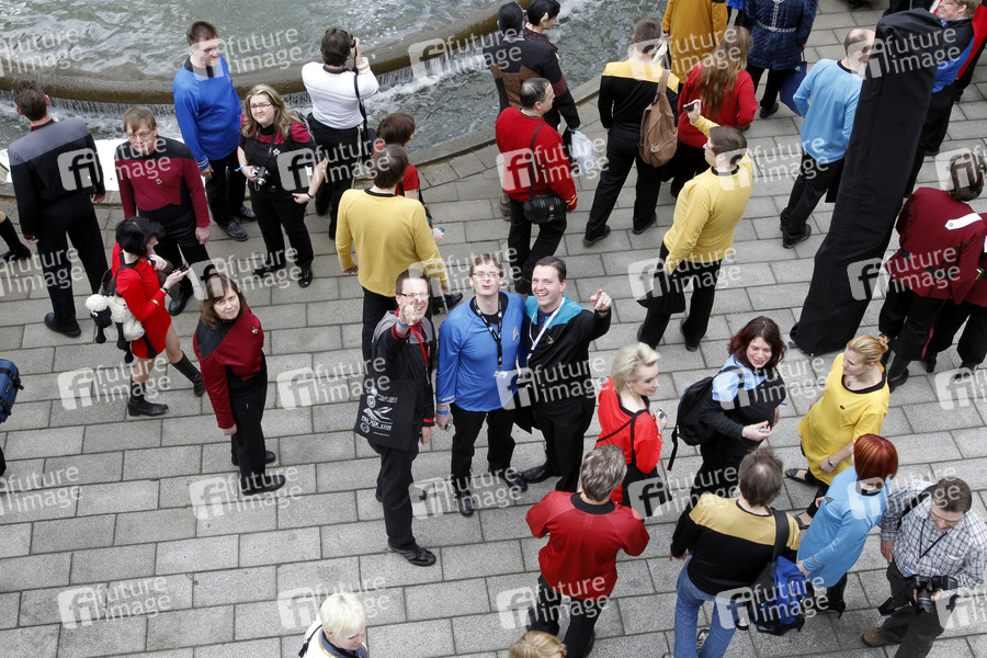 FedCon XIX im Bonner Maritim Hotel, Tag 2. Neuer Weltrekord für ein Treffen von Trekkies in Kostümen und Uniformen aus den Star Trek Serien und -Filmen für das Guinness Buch der Weltrekorde. 507 Fans trafen sich im Innenhof des Maritim Hotels in Bonn
