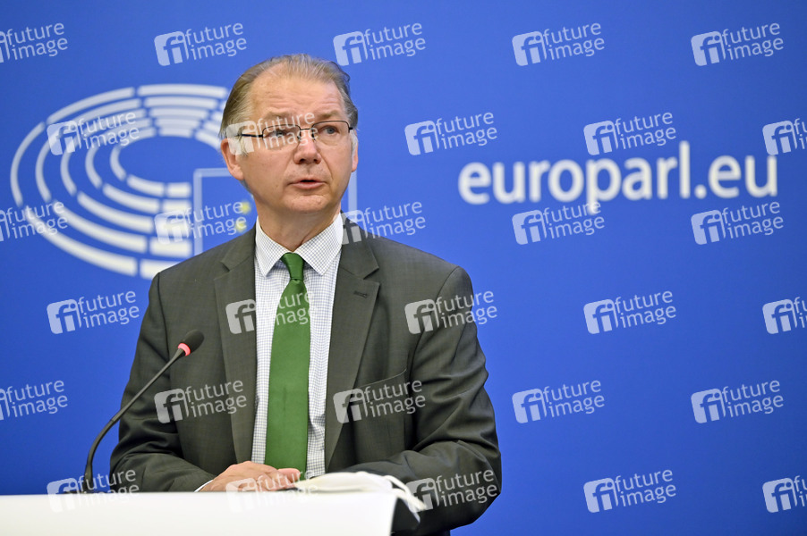 Pressekonferenz, PK, Pressestatement, Strasbourg, Europaparlament, EU-Parlament, EP, Parlament der Europäischen Union, Parlamentum Europaeum, Mitglied des Europäischen Parlaments, Politiker, Belgien, Ecolo, Co-Vorsitzender der Fraktion Die Grünen/EFA