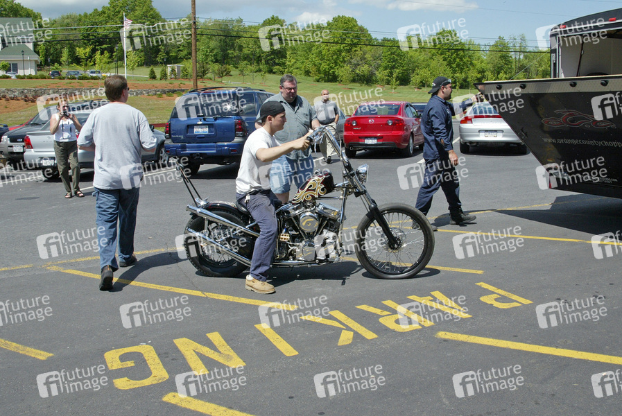 Bei der Firma Orange County Choppers (OCC) und den Stars der Reality TV-Show 'American Chopper' in Montgomery / New York. Chopperanlieferung zum Ausstellungsraum