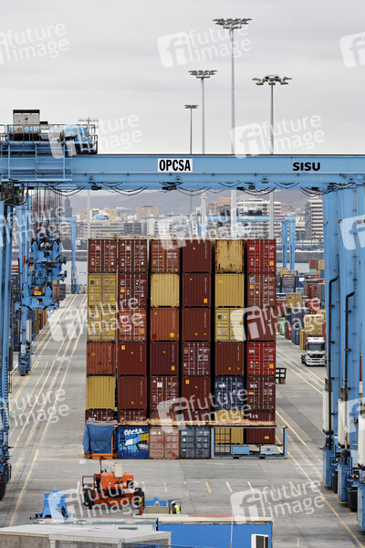 Container, Schiffscontainer, Ware, Waren, Bruttoregistertonne, Bruttoregistertonnen, Warenverkehr, Warenaustausch, Welthandel, Handel, Wirtschaft, Makroökonomie, Schiffsfracht, Fracht, löschen, Einfuhr, Ausfuhr, Import, Export, Zoll, Zölle, Strafzölle, Lieferkette, Lieferketten, Hafen, Handelsroute, Handelsrouten, Importe, Exporte, Exportüberschuss, Importüberschuss, Umschlagshafen, kanarische Inseln, Kanaren, Gran Canaria, ISO-Container, High Cube, Seecontainer, Logistik, Containerkrise, Transport, Transportkosten, globaler Markt, Weltwirtschaft, Hafen, Symbolbild, Symbolfoto