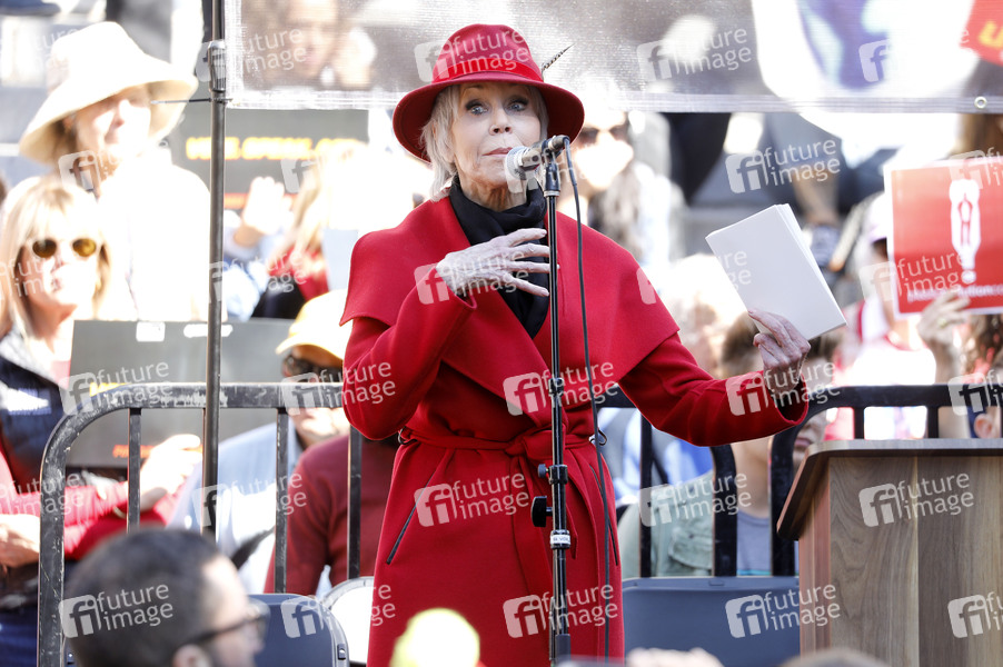 James Fonda spricht bei der Fire Drill Fridays Kundgebung gegen den Klimanotfall vor dem Rathaus. Los Angeles, 07.02.2020