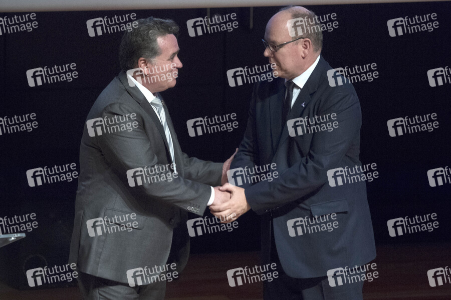 Jose Font Sanchis und Fürst Albert II. von Monaco bei der Verleihung der Fondation Prince Albert II de Monaco Awards im Museo Reina Sofia. Madrid, 20.06.2019