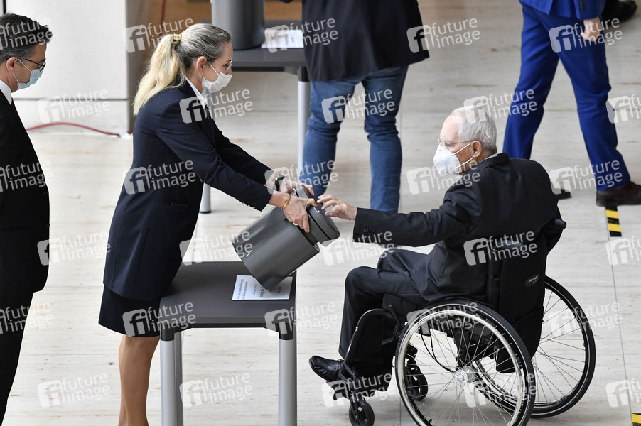 Wolfgang Schäuble bei einer Abstimmung im Rahmen der 227. Sitzung des Deutschen Bundestages im Reichstagsgebäude. Berlin, 06.05.2021