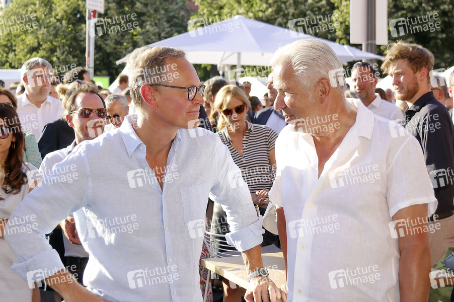 Michael Müller und Klaus Wowereit beim 23. Berliner Hoffest 2025 am Roten Rathaus. Berlin, 01.07.2025