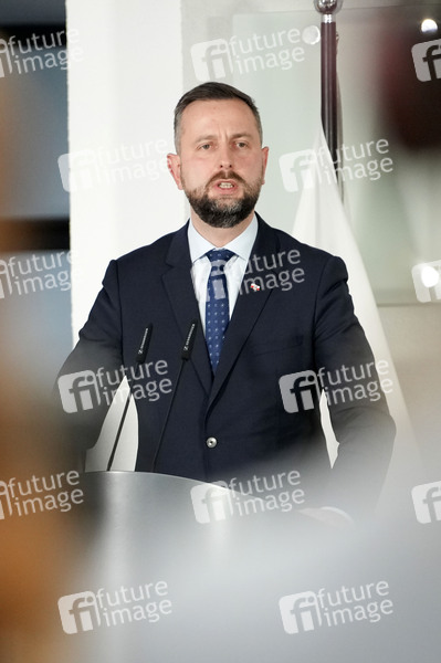 Wladyslaw Kosiniak-Kamysz beim Treffen zum Gespräch mit drei Amtskollegen und einer Unterstaatssekretärin aus vier europäischen Ländern über die Stärkung der europäischen Sicherheit und Verteidigung mit anschließendem gemeinsamen Pressestatement im Bundesministerium der Verteidigung. Berlin, 25.11.2024