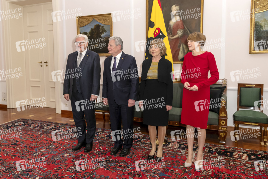 Frank-Walter Steinmeier, Joachim Gauck, Elke Büdenbender und Daniela Schadt beim Abendessen zu Ehren von Joachim Gauck anlässlich seines 80. Geburtstags im Schloss Bellevue. Berlin, 11.02.2020