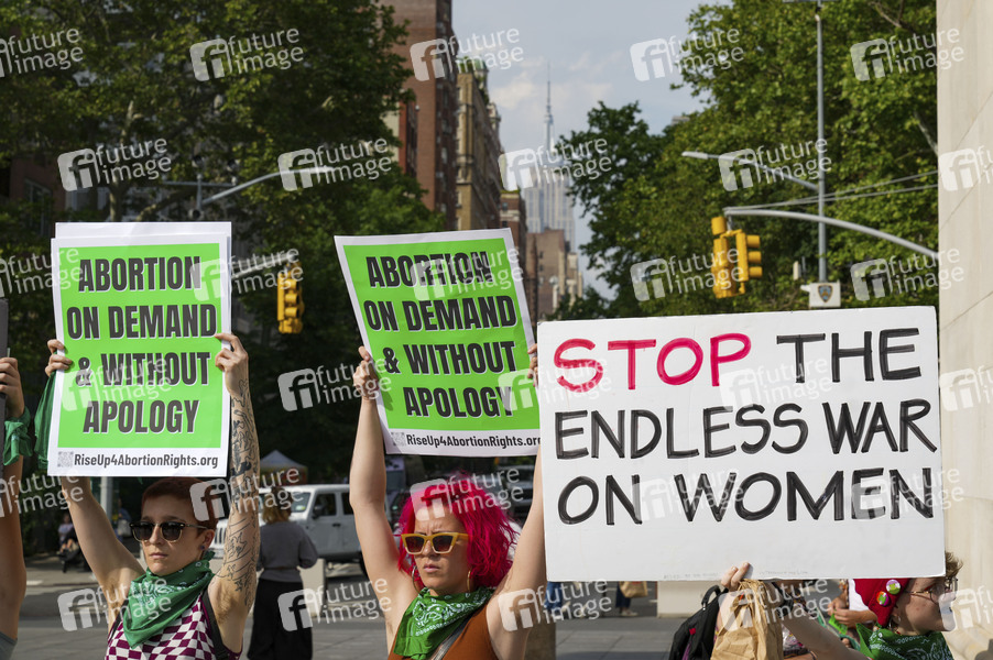 Demonstration für Abtreibungsrechte im Washington Square Park. Mehrere US-Organisationen, die das Recht auf Abtreibung unterstützen, riefen am 14. Mai zu landesweiten Protesten auf, nachdem ein durchgesickerter Gutachtenentwurf zeigte, dass der Oberste Gerichtshof der USA plane, seine wegweisende Grundsatzentscheidung zum Abtreibungsrecht Roe v. Wade aufzuheben. New York, 03.06.2022