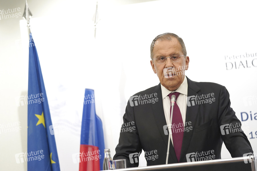 Sergei Wiktorowitsch Lawrow / Sergey Lavrov bei einer Pressekonferenz zur Eröffnung vom 18. Petersburger Dialog 2019 im Steigenberger Hotel. Königswinter, 18.07.2019