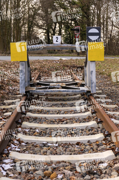 Ein Prellbock verhindert, dass bei einem Stumpfgleis einer Eisenbahnstrecke ein Fahrzeug über das Gleisende hinausrollen kann. (Symbolfoto, Themenfoto) Nienstedt, 22.01.2025