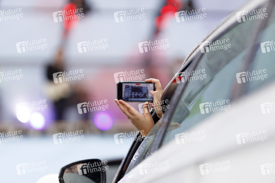 Impression beim Autokonzert 'Carnevalssitzung #1' von Bonnlive am Südstadion. Wegen der anhaltenden Coronakrise sind Karnevalsveranstaltungen in diesem Jahr weitgehend abgesagt, der Kölner Rosenmontagszug findet lediglich virtuell statt, Konzerte unterliegen strengen Beschränkungen. Köln, 06.02.2021
