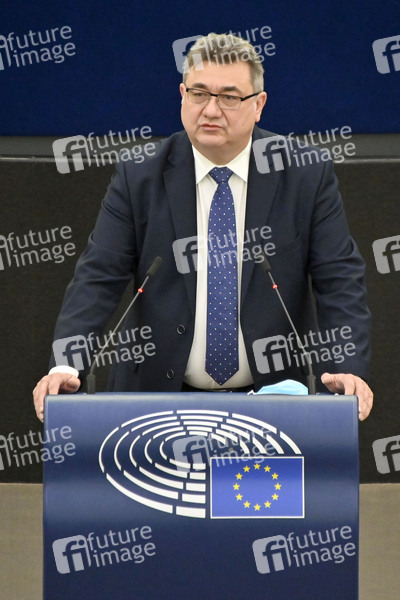 Grzegorz Tobiszowski bei einer Plenartagung zum sechsten Bewertungsbericht des Weltklimarats der Vereinten Nationen zum Klimawandel im Plenarsaal des Europäischen Parlaments. Straßburg, 04.04.2022
