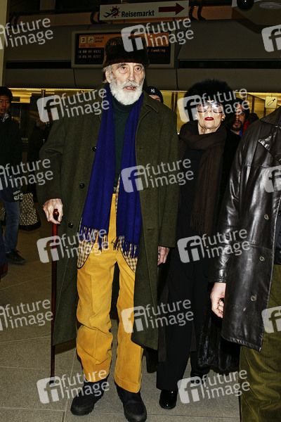 Ankunft von Christopher Lee und Gattin Gitte am Flughafen Tegel, Berlin