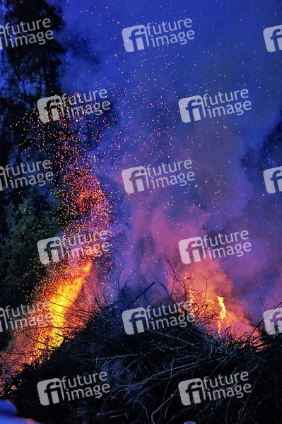 Ostern, Tradition, Feuer, Lagerfeuer, Weserbergland, Brauch, Feuerweihe, Ostersonntag, Osterbrauch, Holzstoß, Feuerwehr, Rauchentwicklung, Rauch, Qualm, Symbolbild, Themembild