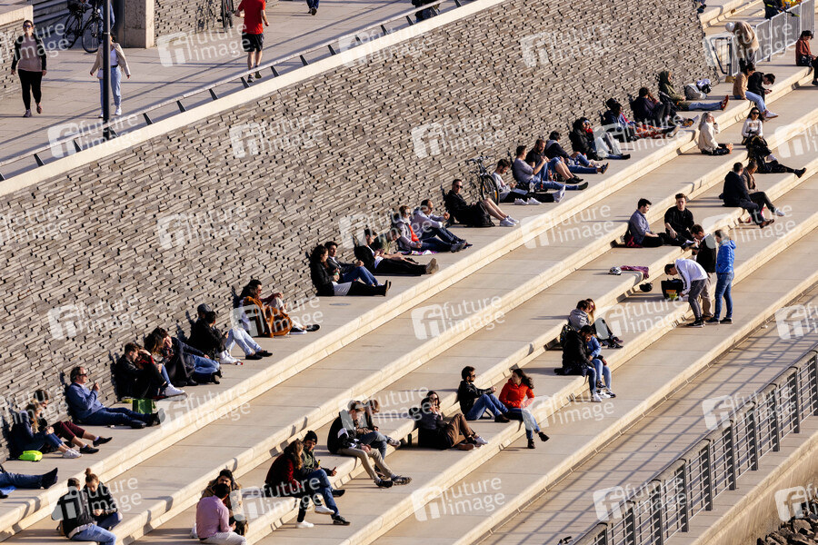 Rheintreppe, Rheinboulevard, Sonnenbaden, Sonne genießen, Frühling, Natur, Luft schnappen, Spaziergang, Frühling, Virenschutz, Ausbreitung, Lock Down, Lockdown, Hautkontakt, Öffentlichkeit, Eindämmung, Seucheneindämmung, anstecken, infizieren, Vorbeugung, Prävention, schützen, Schutz, Ausgangssperre, Ausgangssperren, Ausgangsverbot, Ausgangsverbote, Kontaktverbot, Kontakt-Verbot, Kontaktverbote, Versammlungsfreiheit, Versammlungsverbot, Abriegelungen, Ansammlungsverbote, Ansammlungsverbot, Ausgangseinschränkung, Ausgangsbeschränkungen, Kontaktsperre, Bewegungsfreiheit, Grundrechte, Einschränkung, Verzicht, Seuchenschutz, Mindestabstand, Eindämmung, Seuchenschutz, Corona-Schutz, Virus, Viren, Corona, Sars-CoV-2, Covid-19, Coronavirus, Coronaviren, Corona-Virus, Corona-Viren, Ansteckung, Ansteckungsgefahr, Epidemie, Pandemie, Infektion, Infektionen, Social Distancing, zu Hause bleiben, Selbstisolation, soziale Kontakte, Risiko, Risikobewertung, Maßnahmen, Neuansteckungen, Ansteckung, Coronakrise, Corona-Krise, Coronamaßnahmen, Corona-Schutz, flatten the curve, Ausnahmesituation, Zeitgeschichte, Übertragung, Erreger, Prävention, #stay home, #stayhome, Corona-Regeln, Corona-Maßnahmen, Zwangsquarantäne, Ordnungswidrigkeit, Bußgeld, Ordnungsgeld, Versammlungsfreiheit, nicht mehr als zwei Personen, öffentliche Treffen, Ausgang, Menschengruppen, Menschenansammlung, Menschenmassen, Symbolfoto, Symbolbild