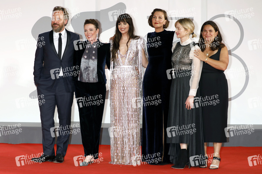 Peter Sarsgaard, Olivia Colman, Dakota Johnson, Maggie Gyllenhaal, Alba Rohrwacher und Talia Kleinhendler bei der Premiere des Kinofilms 'The Lost Daughter' auf der Biennale di Venezia 2021 / 78. Internationale Filmfestspiele von Venedig im Palazzo del Cinema. Venedig, 03.09.2021